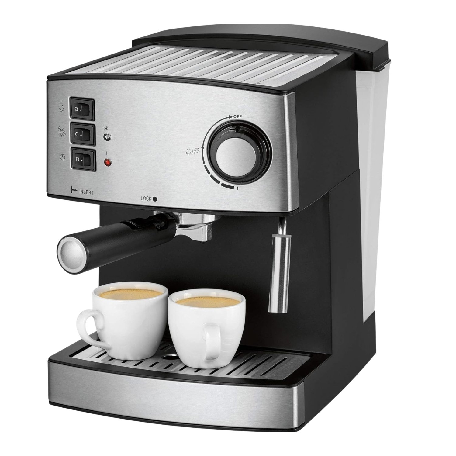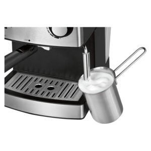 Third Paragraph Der Komfort steht bei diesem Modell im Vordergrund. Der großzügige 1,6 Liter Wassertank ist transparent und abnehmbar, was das Befüllen und die Reinigung erheblich erleichtert. Eine praktische Tassenvorwärmfunktion sorgt dafür, dass Ihr Espresso nicht sofort abkühlt, und die außenliegende Wasserstandsanzeige gibt Ihnen jederzeit volle Kontrolle über die Kapazität.